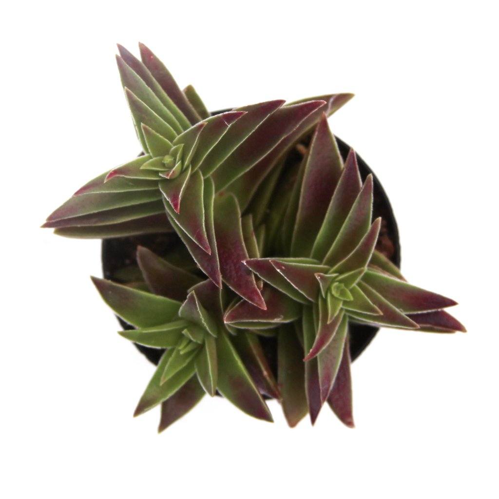 With narrow, pointed leaves stacked up each narrow stem, it is no surprise how Crassula corymbulosa 'Shark's Tooth' earned its name! The tower-like growth habit of each stem culminates in a uniquely symmetrical rosette, making this variety a stunner from any angle. The bright green leaves are known to flush a reddish hue when sun stressed, and each stem can reach up to 8 inches tall at maturity, making ‘Shark’s Teeth’ an exceptional standalone specimen, or a ground-covering addition to succulent arrangements or temperature rock gardens.