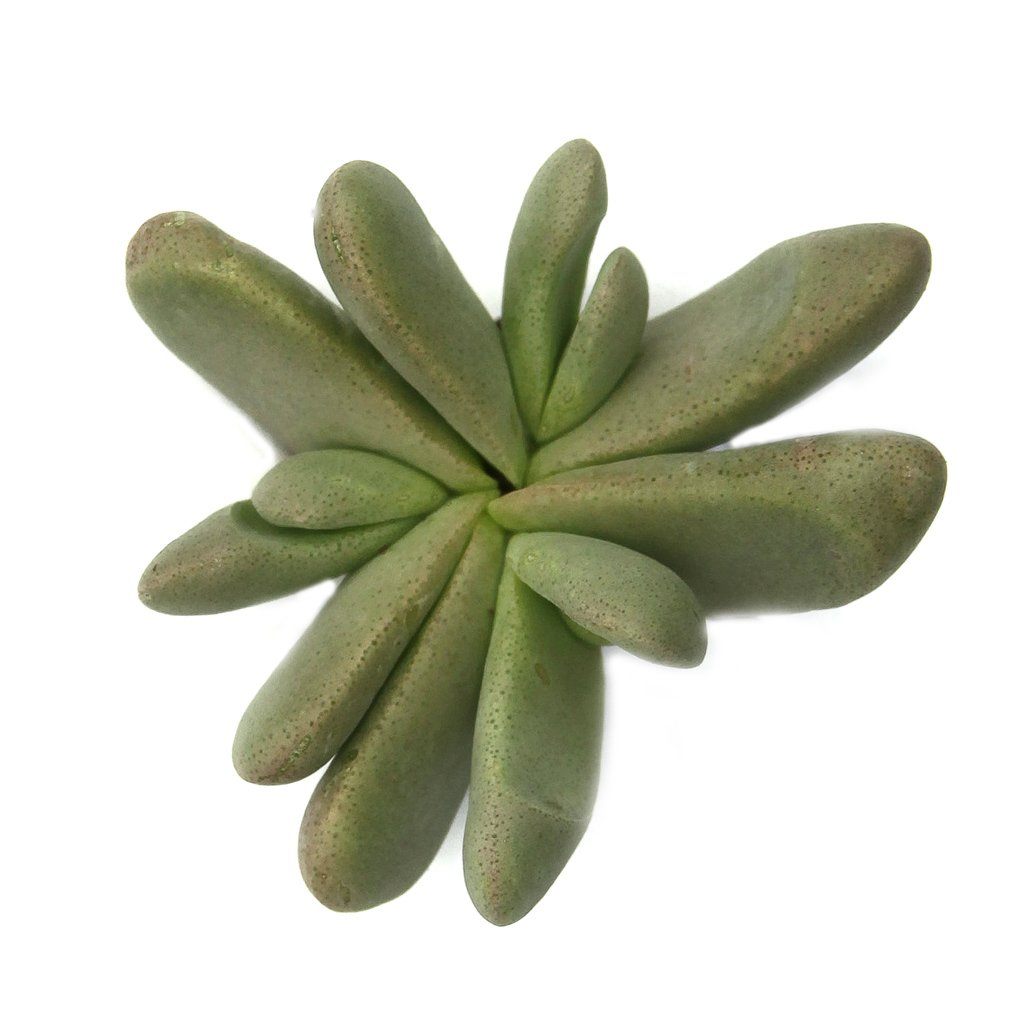 This bizarre South African native features pairs of very thick, tongue-shaped leaves that form stacks which angle away from the center of the plant, forming a ring of rich green that will flush to maroon with ample sun exposure. As its species name would suggest, Glottiphyllum pygmaeum will reach only a few inches tall and wide at maturity, with the oldest leaves towards the base of the plant beginning to shrivel as new pairs emerge each year. Dormant during both the height of summer and the depths of winter, this slow grower is relatively easy to care for, preferring a bit of neglect to coddling.